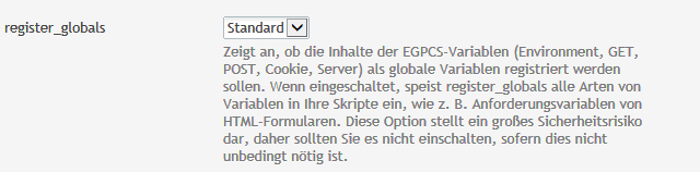 Sie können hier z.B. die Option "register_globals" einschalten, welche standardmässig ausgeschaltet ist: